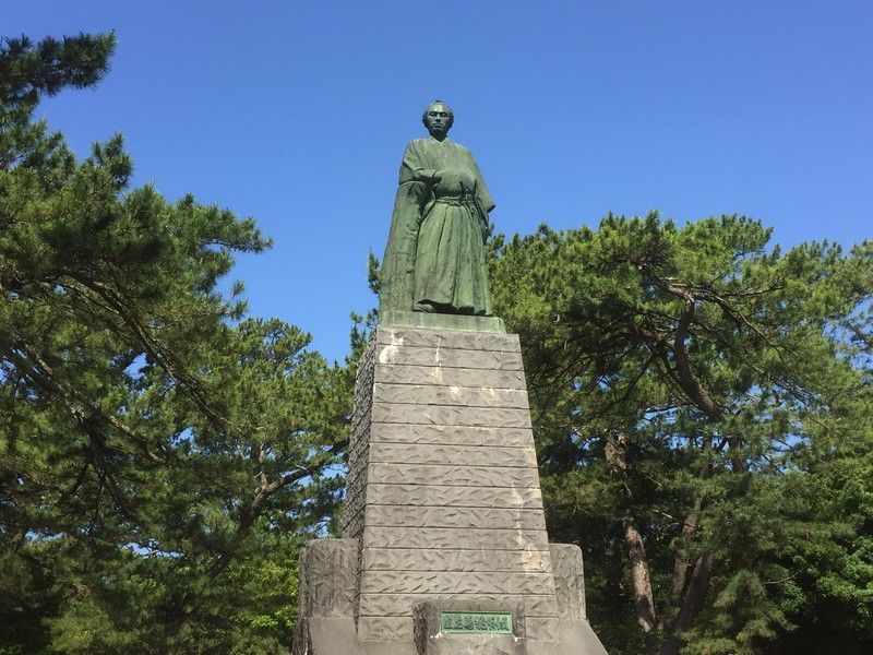 桂浜にある龍馬像。
