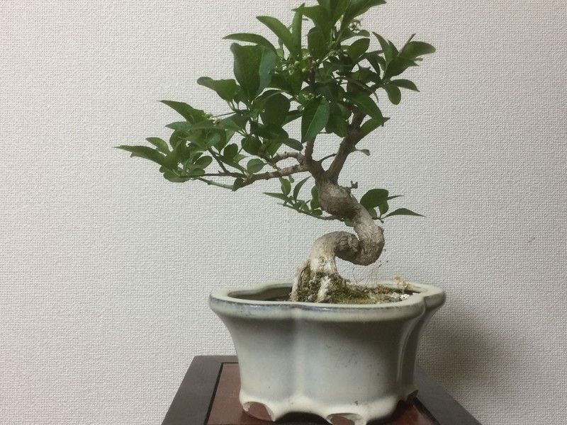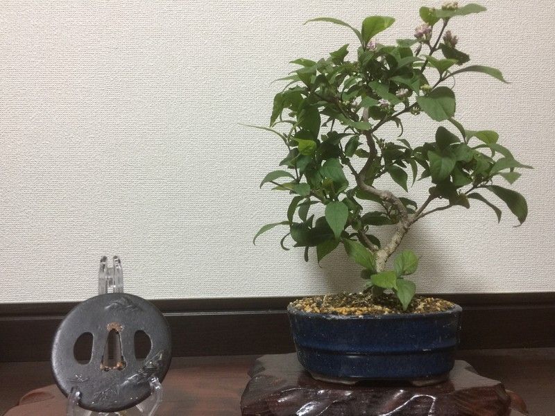 ワイの部屋、床の間がないんでカッコつかんのやけど、こんな感じ↓で飾るようにしてみた。できれば清流のせせらぎや河が描かれてる短冊や小さな掛軸を盆栽と盆栽の間に掛けたいんだけど、それをするにはチョイとスペースが狭いかな。けどまあ、雑木類や松類を飾るだけでも涼しげになってるから良しとするか。