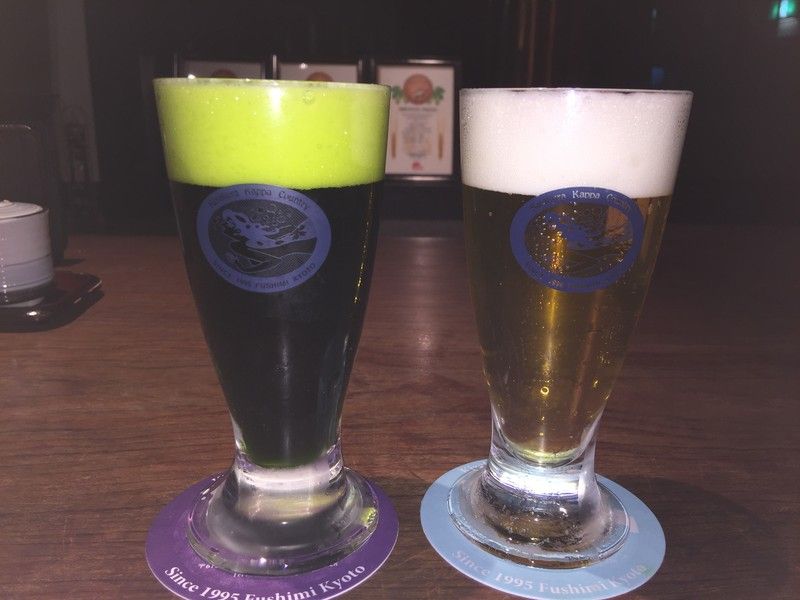 今回は定番品は飲まず、ちょっと珍しいやつを飲んでみました。右は山田錦。美味い。左は限定商品の京都麦味抹茶。好みが分かれると思うけどクラフトビール好きならイケると思う。カスケードホップ由来の柑橘系の香りと抹茶の香りが鼻腔に来るんだけど意外とマッチしてる。