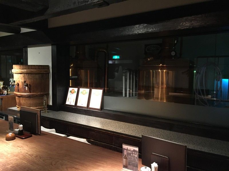 ビールの仕込み釜を見ながら飲めます。