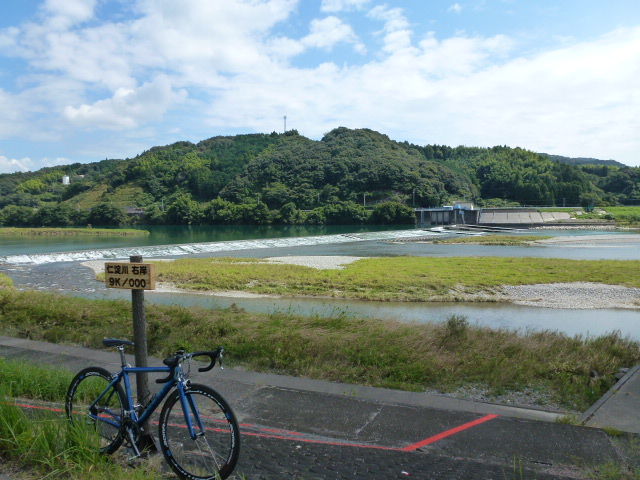 黒潮ラインに出ると西に進みます。風は向かい風気味だったものの、ほぼ無風に近かったんで楽に走れました。ただ若干曇り気味だったんで景色はそこそこでした。やっぱ海はピーカンが綺麗っす。途中で黒いアンカー?に乗った速いローディとすれ違ったので会釈。その後、仁淀川河口大橋まで来ると、その手前で北上して春野市街に向かいます。