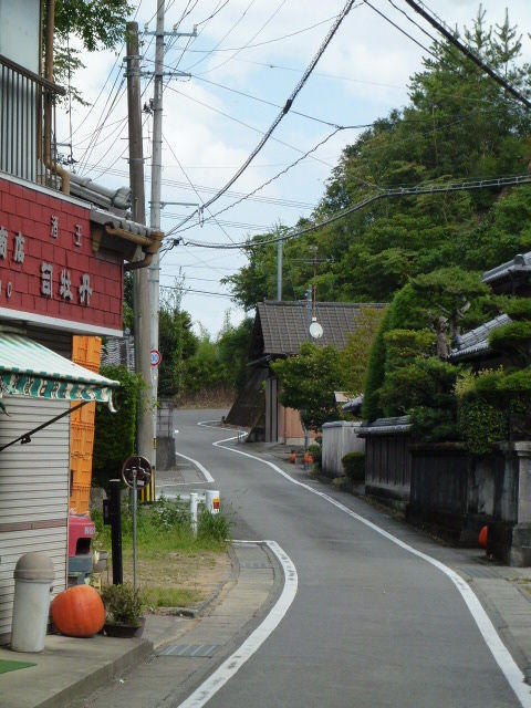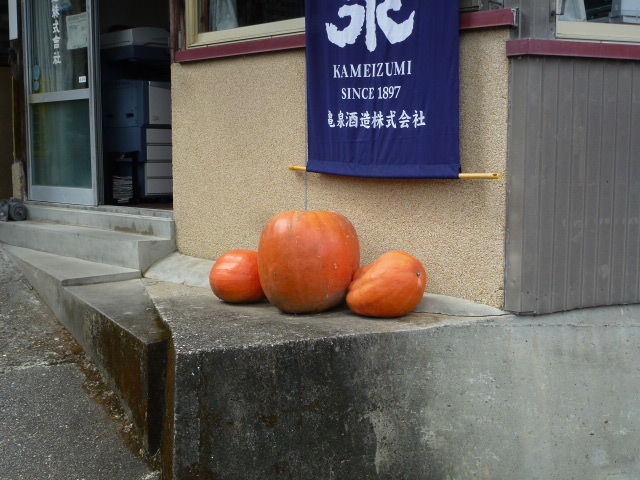 その後、土佐市街に入り、287号にアクセスして道なりに進みます。すると、なんか巨大なカボチャが各家の前に置かれている地域に来てしまいました。なんじゃこりゃ?と思っていると、そういえば、数日前の朝刊に巨大カボチャのコンテストが開催された?という記事があったなぁと思いだし、ここで開催されたのかと納得。どんな味がするんやろう・・・。