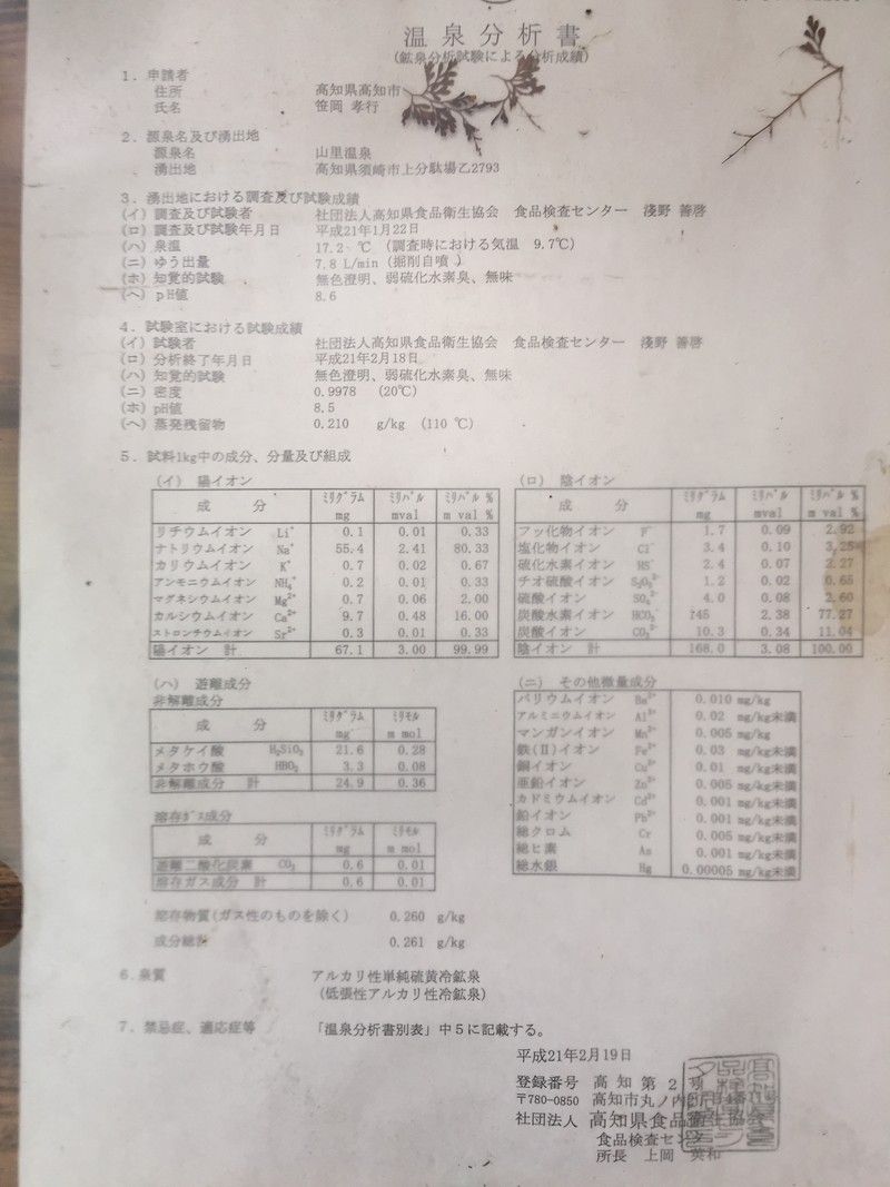 この温泉はかなり昔からある温泉を現オーナーが12年前に買い取り改装した温泉で、それまでは循環濾過していた温泉を現在は源泉かけ流しにしています。場所は須崎市街から197号線に乗って津野町方面に行き、途中で317号線に移って道なりに進んだところにあります。施設は温泉の他、宿泊施設に宴会場などもあり、約4000坪の敷地には桜や紅葉などの木々が植えられていてとても美しいです。
